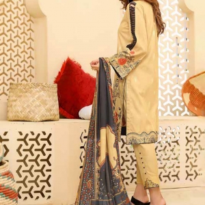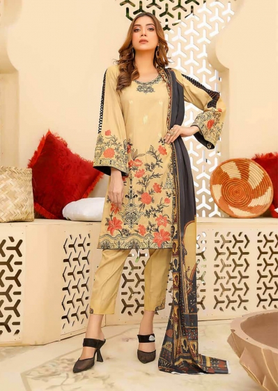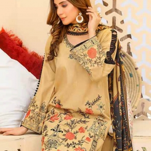 WARESHA: Luxury beige sweet leather ; Fully multihead embroiderd shirt; Emb back n sleevs; Plain trouser; Printed wool shawl;