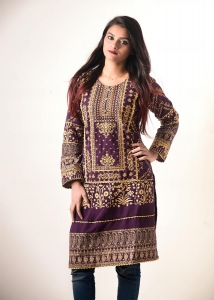 প্রবাসে যেসব আপুরা আমদের দেশি বুটিক হাউজের জর্জেটের ড্রেস গুলো প্রচণ্ড ভাবে মিস করছেন তাদের জন্য Pundro.Com এর এবারের আয়োজন নান্দনিক ডিজাইনের রুচিশীল চমৎকার সব জর্জেট ওয়ান পিস। বেগুনী কালারের ওয়ান পিসটিতে জর্জেট ফেব্রিকের উপর চমৎকার জ্বরি সুতার এমব্রয়ডারির সাথে গোল্ডেন প্রিন্টিং ডিজাইন রয়েছে। ড্রেসটি ক্যাজুয়াল এবং একইসাথে পার্টি ড্রেস হিসেবেও মানানসই।