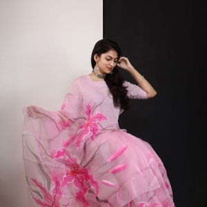 প্রায় দুশো বছর আগেও ঢাকাই মসলিন ছিল পৃথিবীর সবচেয়ে দামী কাপড়। সে যুগে মসলিনের মর্যাদা ছিল ধনরত্নের মতই। আর ঢাকাই মসলিনের সমাদর ছিল সারা পৃথিবী জুড়ে।সেই সুখ্যাতি তৈরি হয়েছিল হাজার হাজার বছর ধরে। প্রাচীন গ্রিসে মনে করা হতো মসলিনই হচ্ছে দেবীদের মূর্তিকে পরানোর উপযুক্ত কাপড় । দূরদূরান্তের বহু রাজ্যের রাজারা পরতেন এই মসলিন। আর ভারতের মোগল রাজবংশে তো অনেক প্রজন্ম ধরে পরা হয়েছিল মসলিনের পোশাক। ঢাকাই মসলিন হারিয়ে গেছে অনেক বছর আগে।বিলুপ্তপ্রায় প্রাচীন মসলিন পুনরুজ্জীবিত করার প্রয়াস চলছে বাংলাদেশে। যদিও সে যুগের মসলিনের আর আজকের মসলিনের মধ্যে রয়েছে অনেক তফাত, তবুও প্রাচীন সেই রত্নের উত্তরাধিকারী কিন্তু আমাদের এই মসলিন।বেবি পিংক মসলিনের উপর হ্যান্ড পেইন্ট করা শাড়িটি আপনার শাড়ির সংগ্রহে অন্য মাত্রা যোগ করবে।