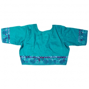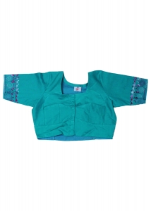 উনিশ শতকে ঠাকুর বাড়িতে ব্লাউজ পেটিকোট সহ শাড়ি পরার প্রচলন হয়। তারপর ধীরে ধীরে এগুলো হয়ে উঠে শাড়ির সাথে পরার অতি আবশ্যক পরিচ্ছদ। পছন্দসই ম্যাচিং ব্লাউজ না হলে শাড়ি পরার আগ্রহটাই হারিয়ে যায়। ইউরোপে রেডিমেড ব্লাউজ মোটামুটি দুর্লভ ।কিন্তু প্রবাসী বাঙালি নারীরা এখন শান্তিনিকেতনের হাতের কাজের শৈল্পিক ডিজাইনের রেডিমেড ব্লাউজ পেয়ে যাবেন Pundro.com এ। কটন ফেব্রিকের প্রতিটি ব্লাউজে ভেতরে ফলস দিয়ে সেলাই করা আছে। সায়ান কালারের এই ব্লাউজটিতে হাতায় ও ব্যাক সাইড জুড়ে মাল্টি কালার সুতার হাতের কাজ করা আছে। চমৎকার ফিটিংস এর সাথে পাচ্ছেন নান্দনিক ডিজাইন ।