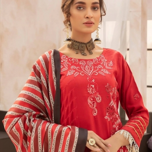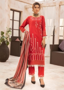 NUREH by RangRaiz: luxury winter collection; Digital premium soft italian wool shawl; Dyed red fully heavy embroidery shirt; Dyed italian red trouser; 10 design 10 outfits in box. Each suit is inside a beautiful luxury gift box;