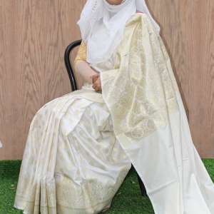 বেনারসি শাড়ির আরেকটি ধরন হলো কাতান শাড়ি।শাড়ির ইতিহাস আর ঐতিহ্যের সঙ্গে ওতপ্রোতভাবে মিশে আছে কাতান।কাতান ভালবাসে না এমন বাঙ্গালী নারী খুঁজে পাওয়া যাবে না।যুগের পর যুগ ধরে বাংলাদেশ ও ভারতের তাঁতিরা কাতান বুনছেন নিজস্ব স্বকীয়তায়।Pundro.com এর এবারের আয়োজনে আছে ইন্ডিয়ান কাতানের বিশাল সংগ্রহ।ছবির হোয়াইট কালারের কাতানটিতে আঁচলে ও পাড়ে সোনালী সূতার কাজ রয়েছে। বিয়ের অনুষ্ঠান কিংবা যে কোন উৎসবের জন্য এই শাড়িটি হবে পারফেক্ট চয়েস।কাতান শাড়ির অন্যতম আকর্ষণ হলো এর উজ্জ্বলতা যা স্বভাবতই গর্জিয়াস লুক এনে দেয়।