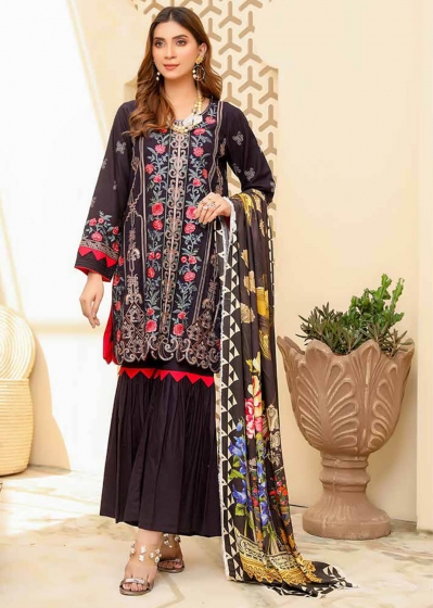 WARESHA: Luxury black sweet leather ; Fully multihead embroiderd shirt; Emb back n sleevs; Plain trouser; Printed wool shawl;
