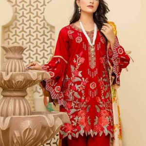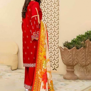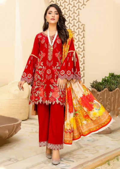 WARESHA: Luxury red sweet leather ; Fully multihead embroiderd shirt; Emb back n sleevs; Plain trouser; Printed wool shawl;