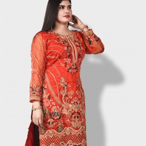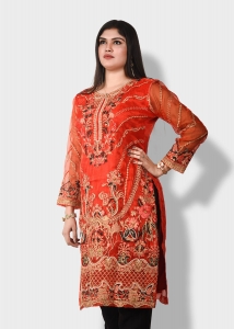 কুর্তি কিংবা ওয়ান পিস এই জেনারেশনের মেয়েদের পছন্দের শীর্ষে থাকা ফ্যাশনেবল একটি পোশাক। Pundro.Com প্রবাসী নারীদের জন্য নিয়ে এলো পাকিস্তানের বিখ্যাত বিন সাইয়িদের সুনিপুণ জরি ও মিনাকারি কারুকাজের সমন্বয়ে গর্জিয়াস লুকের সব কুর্তি। এই কুর্তিটি অরেঞ্জ কালারের অরগাঞ্জা ফেব্রিকের উপর ফ্রন্ট পার্টে সম্পূর্ণ গোল্ডেন জরি সুতার এমব্রয়ডারি সাথে ফ্লরাল মিনাকারি কাজ করা আছে। হাতায় এবং দামানে থাকছে চমৎকার কারদানা টার্সেল। যেকোন পার্টিতে হালকা মেকআপ ও জুয়েলারীতেও গর্জিয়াস লুকের জন্য এই কুর্তিটি সংগ্রহে রাখার মত।