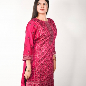কুর্তি কিংবা ওয়ান পিস এই জেনারেশনের মেয়েদের পছন্দের শীর্ষে থাকা ফ্যাশনেবল একটি পোশাক। Pundro.Com প্রবাসী নারীদের জন্য নিয়ে এলো পাকিস্তানের বিখ্যাত বিন সাইয়িদের সুনিপুণ জরি ও মিনাকারি কারুকাজের সমন্বয়ে গর্জিয়াস লুকের সব কুর্তি। এই কুর্তিটি পিংক কালারের সিল্ক ফেব্রিকের উপর ফ্রন্ট পার্টে সম্পূর্ণ সিলভার জরি সুতার এমব্রয়ডারি রানিং কাজ করা আছে।হাতায় এবং দামানে থাকছে চমৎকার কারদানা টার্সেল। যেকোন পার্টিতে হালকা মেকআপ ও জুয়েলারীতেও গর্জিয়াস লুকের জন্য এই কুর্তিটি সংগ্রহে রাখার মত।