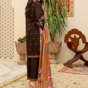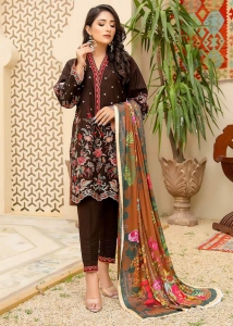 WARESHA: Luxury black sweet leather ; Fully multihead embroiderd shirt; Emb back n sleevs; Plain trouser; Printed wool shawl;