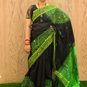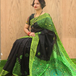 - রং : কালো জমিন ও সবুজ পাড় এবং সবুজ রঙের আঁচল