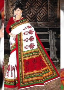 - রং : সাদা জমিনে লাল-হলুদ-সবুজের পার ও আঁচল