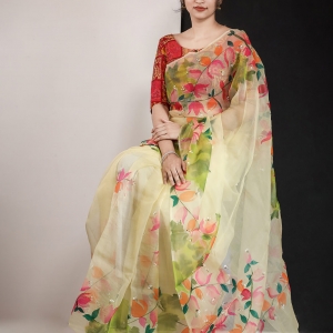 প্রায় দুশো বছর আগেও ঢাকাই মসলিন ছিল পৃথিবীর সবচেয়ে দামী কাপড়। সে যুগে মসলিনের মর্যাদা ছিল ধনরত্নের মতই। আর ঢাকাই মসলিনের সমাদর ছিল সারা পৃথিবী জুড়ে।সেই সুখ্যাতি তৈরি হয়েছিল হাজার হাজার বছর ধরে। প্রাচীন গ্রিসে মনে করা হতো মসলিনই হচ্ছে দেবীদের মূর্তিকে পরানোর উপযুক্ত কাপড় । দূরদূরান্তের বহু রাজ্যের রাজারা পরতেন এই মসলিন। আর ভারতের মোগল রাজবংশে তো অনেক প্রজন্ম ধরে পরা হয়েছিল মসলিনের পোশাক। ঢাকাই মসলিন হারিয়ে গেছে অনেক বছর আগে।বিলুপ্তপ্রায় প্রাচীন মসলিন পুনরুজ্জীবিত করার প্রয়াস চলছে বাংলাদেশে। যদিও সে যুগের মসলিনের আর আজকের মসলিনের মধ্যে রয়েছে অনেক তফাত, তবুও প্রাচীন সেই রত্নের উত্তরাধিকারী কিন্তু আমাদের এই মসলিন। হাল্কা হলুদ মসলিনের উপর হ্যান্ড পেইন্ট করা শাড়িটি আপনার শাড়ির সংগ্রহে অন্য মাত্রা যোগ করবে।