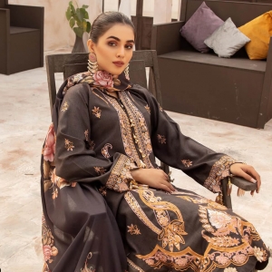 NUREH by RangRaiz: luxury winter collection; Digital premium soft italian wool shawl; Dyed black fully heavy embroidery shirt; Dyed italian black trouser; 10 design 10 outfits in box. Each suit is inside a beautiful luxury gift box;